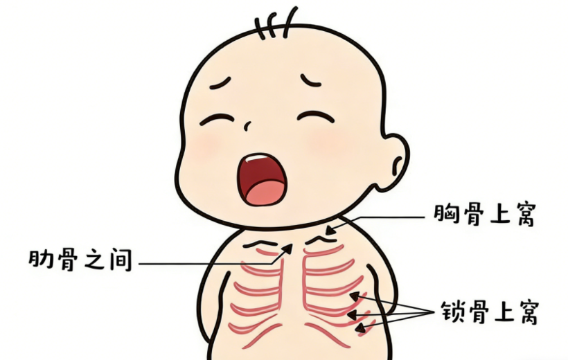 呼吸急促、有三凹征或口唇发紫;