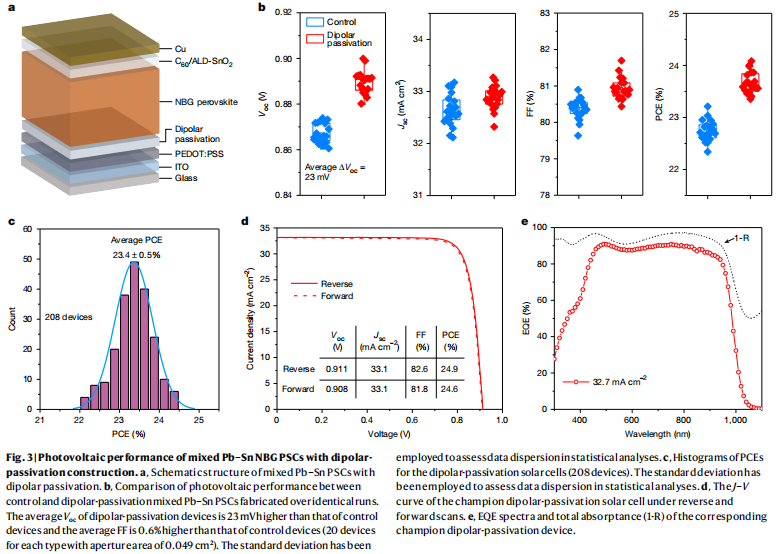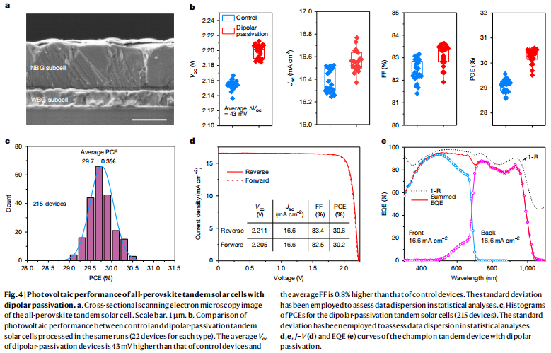 钙钛矿电池本身就具备“天生优势”:溶液法制备工艺简单,成本仅为传统硅基电池的十分之一,还能实现柔性设计,适配建筑光伏一体化、便携式电源、无人机供电等多种场景。而此次偶极钝化技术的成功,直击产业化的核心痛点,让全钙钛矿叠层电池距离商业化落地仅一步之遥。