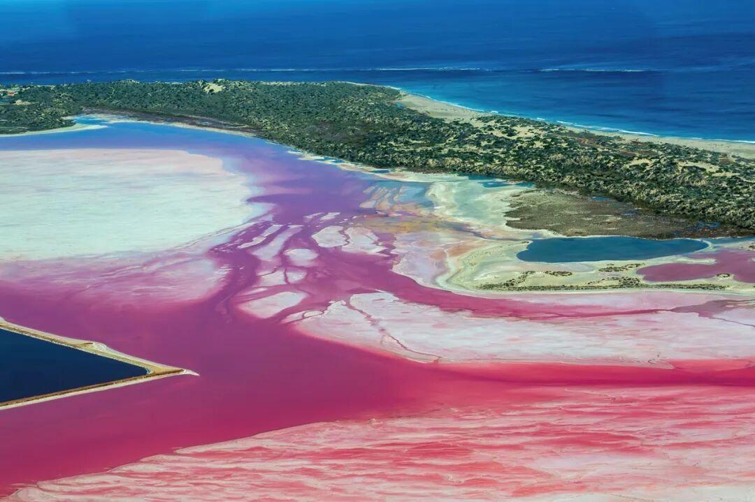 澳洲一些湖泊呈现出如调色盘般绚丽的