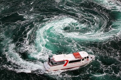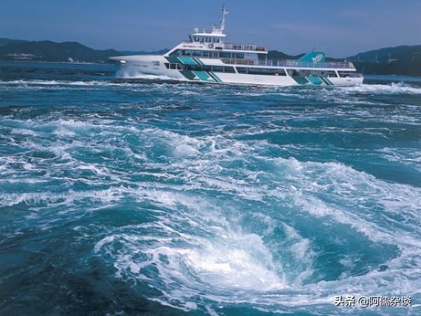 日本鸣门海峡的鸣门漩涡与萨尔特流和北美的OldSow旋涡并称为世界三大旋涡,因为鸣门海峡仅有1.3公里宽,但水流量极大、流速极快,所以水流十分湍急,经常会形成直径15米、流速15公里的大漩涡。在春秋季大潮时,甚至会形成直径20米、时速可达20公里的巨型旋涡,极为壮观。所以每年大潮时都会吸引大量游客前来参观打卡,可以选择较安全的方式,在45米高的大名桥中游步道涡知之道上参观,还可以选择更加刺激的乘坐观潮船直达漩涡中心,亲身感受一下海底黑洞的魅力。