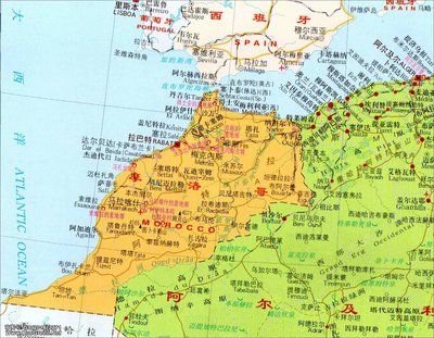 1943年,美国总统罗斯福和英国首相丘吉尔在卡萨布兰卡开会,协调各自立场。“打到让法西斯无条件投降为止”,就是在这里提出来的。从这个角度讲,卡萨布兰卡深刻影响了世界历史的走向。 摩洛哥在国际上经常露脸,除了和西班牙有休达、梅利利亚之争,还有西撒哈拉问题。 西撒哈拉位于摩洛哥西南方,地处大西洋东岸,在撒哈拉沙漠西端,面积26.6万平方千米,放在我国省级行政区中可排第九位。 西撒哈拉以前是西班牙的殖民地,西班牙撤出之后,摩洛哥和毛里塔尼亚瓜分了西撒哈拉。但当毛里塔尼亚也撤出西撒哈拉时,摩洛哥立刻拿下毛里塔尼亚之前占领的约9万平方千米。摩洛哥实控西撒哈拉绝大部分地区,但目前还有四十多个国家与西撒哈拉建交,这件事悬而未决。   有人说:英国不会把直布罗陀还给西班牙,西班牙不会把休达和梅利利亚还给摩洛哥,摩洛哥退出西撒哈拉也是不可能的。这个世界,谁的拳头硬,谁说话就是真理。