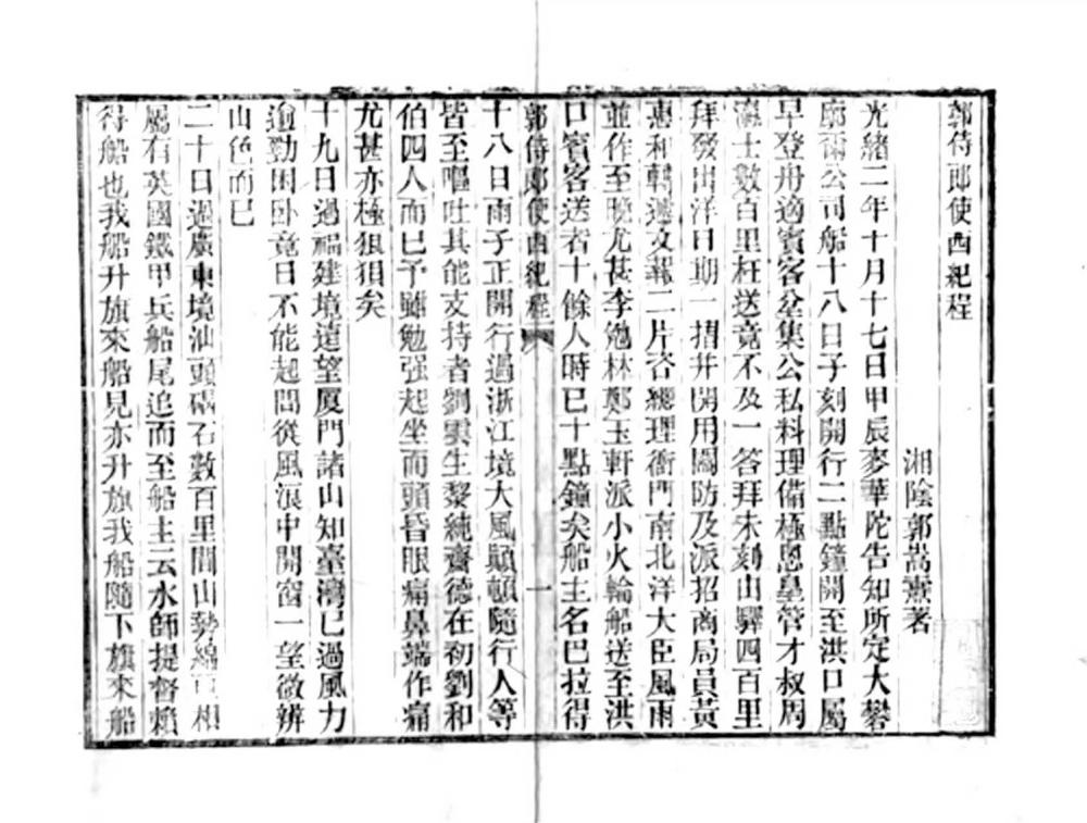 1876 年 12 月,郭嵩焘被任命为中国首位驻外使节启程赴英,在美国人蒲安臣病故于彼得堡 7 年后的 1877 年 1 月抵达英国。他应允将沿途所见所闻记录下来,这就是后来的《使西纪程》。与容闳的《西学东渐记》不同的是,容闳的自传是用英文撰写,并在美国出版,其事迹被作为一个历史见证流传下来,也让容闳的名字和由他开创的幼童留美为后人知晓。而郭嵩焘的见闻是用中文书写,并按照规定需交与清廷。他期盼他的《使西纪程》能在中国印刷,让更多的人分享他的见闻及见解。不幸的是这部盛赞沿途所见异国港口和城市,宣扬所见新事物和新气象的著作,深深刺痛了自以为是的清廷官场甚至某些民间人士;各种罪名扣到了远在伦敦的郭嵩焘头上,诸如“有贰心于英国,想对英称臣”“殆已中洋毒,无可采者”等等。清廷不仅焚毁书稿,还召其回国。可惜这样一个当时极为罕见的开明外交官,非但没有受到应有的重视,反而被排斥和迫害。姑且不提他的《使西纪程》,单就看看他都关注些什么又都说了些什么,就会明白为何他在那个腐朽的时代落得如此下场。
