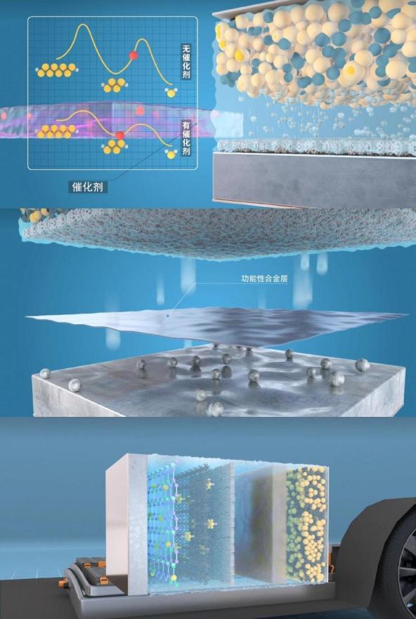 “铺路工”合金层:在锂金属负极表面引入一层特殊设计的功能性合金层。这层“合金路面”能有效降低锂离子跨越金属/电解液界面的阻力(跨界面传输势垒),让锂离子更容易“落户”。