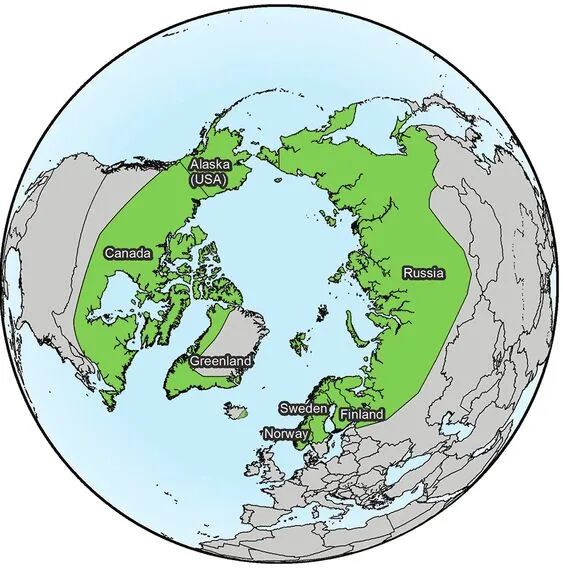 北极视角下,驯鹿的分布范围丨Mark S. Boyce et al. / Environmental Reviews(2017)