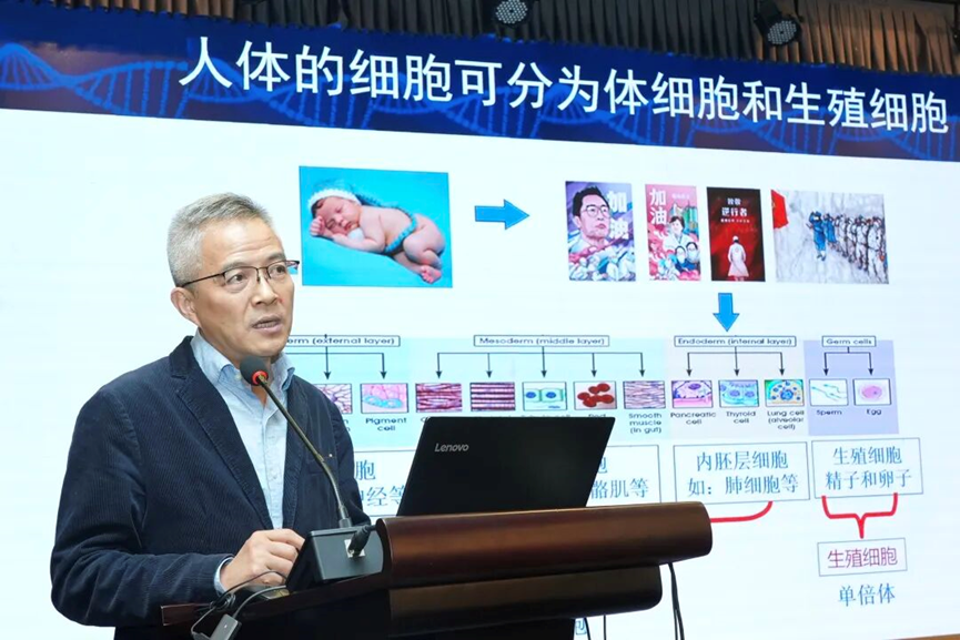 “在座的每一位,都源于一个伟大的奇迹——两个原本注定走向死亡的细胞,在相遇的瞬间,却‘起死回生’,开启了生命的全部可能。”12月19日下午,由上海市科学技术协会和上海市教育委员会联合主办的“大师课堂——院士专家进校园”主题活动在上海市建青实验学校举行。报告厅里,中国科学院院士、著名干细胞与发育生物学家李劲松的开场白,瞬间将在场师生引入一次通往生命科学最奇异疆域的探索之旅。从孙悟空“拔毫毛变猴子”的神话遐想,到实验室里培育“小鼠女儿国”的科学现实,李劲松院士用一场深入浅出、精彩纷呈的报告,为学生们生动诠释了“从克隆到半克隆”的技术革命,以及中国科学家在其中写下的创新篇章。