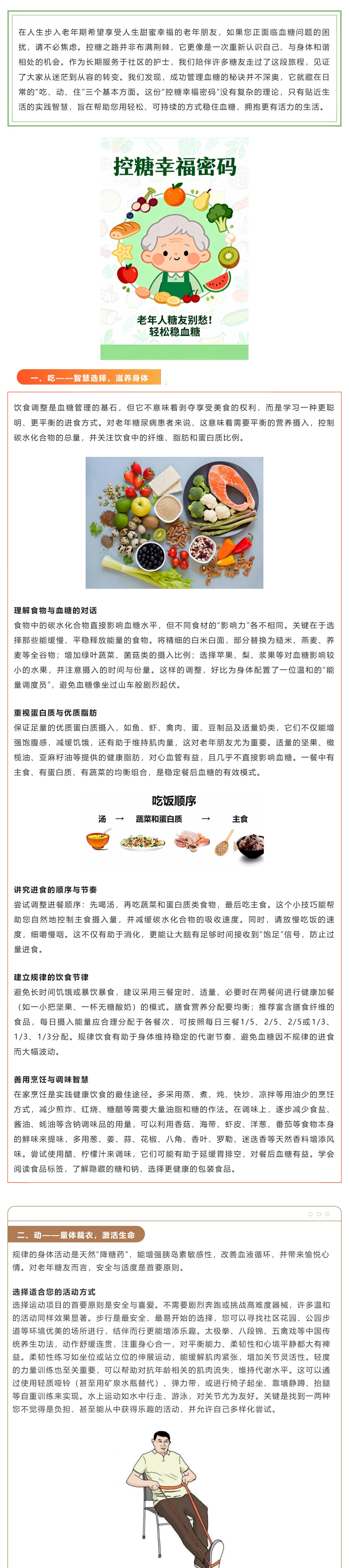 老年人糖友别愁!社区护士整理的 “控糖幸福密码”:吃动住 3 方面,轻松稳血糖