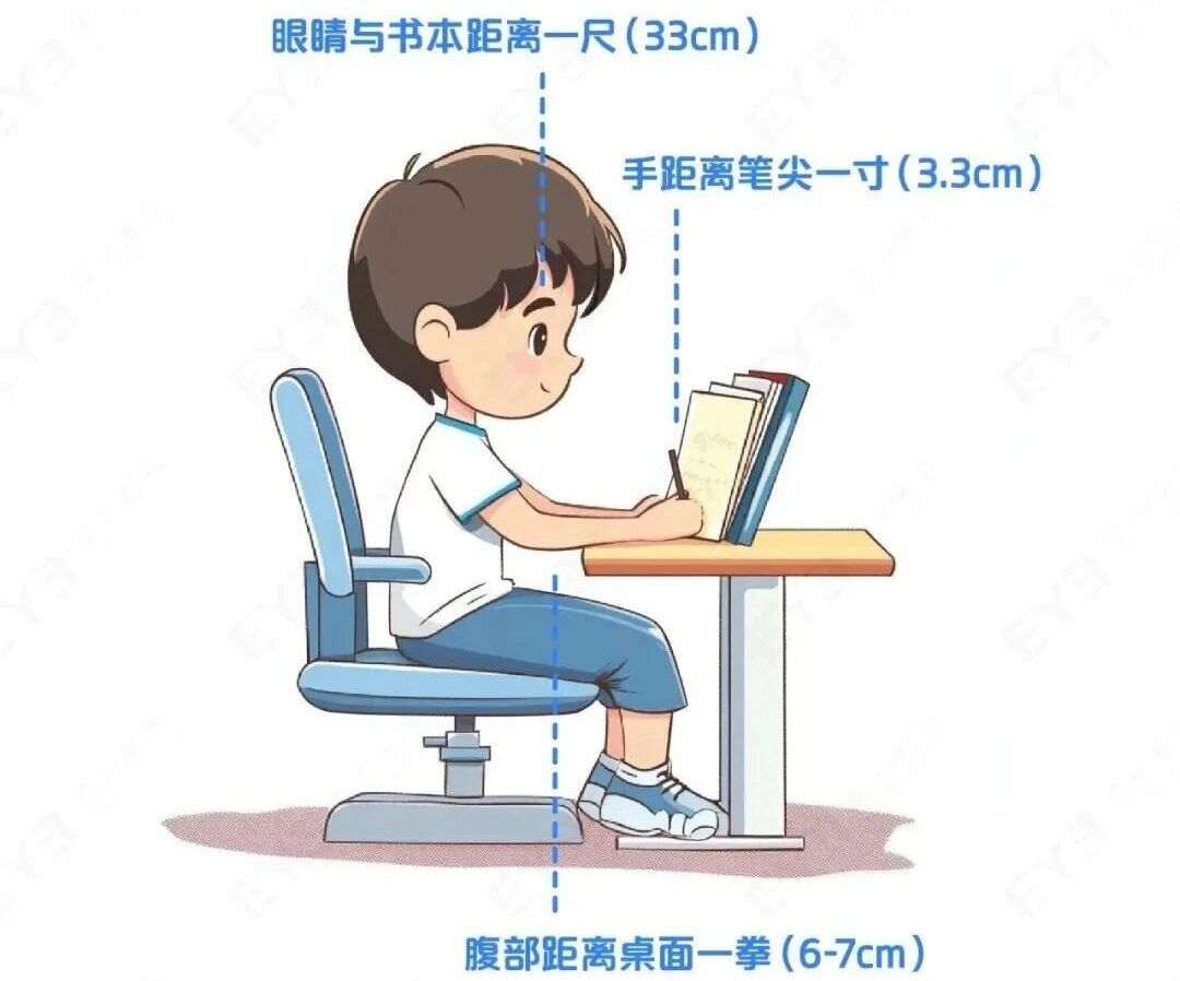 姿势与光线问题:很多孩子写作业时会不自觉弯腰、低头,导致眼睛与书本距离缩短到20厘米以内,进一步加重调节压力。此外,光线过暗或过亮,都会让眼睛为了适应光线而额外“工作”,加速疲劳。