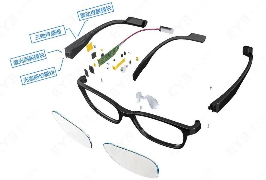 五维数据采集(用眼距离/时长/角度/光照强度/户外暴露时长)震动提醒机制;