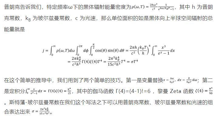 今天的我们可以很容易地从普朗克黑体辐射定律倒推斯特藩-玻尔兹曼定律,略述如下: