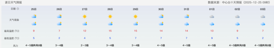 12月2日,第二波寒潮接踵而至,最低温降幅达8-10℃,12月4日,市区最低温仅3.2℃,郊区跌破冰点,但冷空气“来去匆匆”,12月7日,最高温便飙升至20℃。