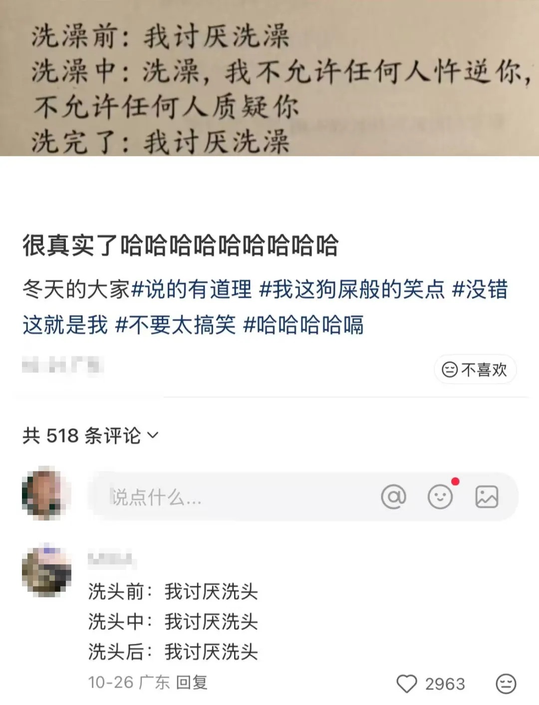 并不是“洗澡”这件事本身难,而是“从干到湿”“从暖到冷”“从躺平到站立”的状态切换,让人心生抗拒、倍感心累。正如物理学中的静摩擦力大于动摩擦力,最难跨越的永远是“起身”的那一下。