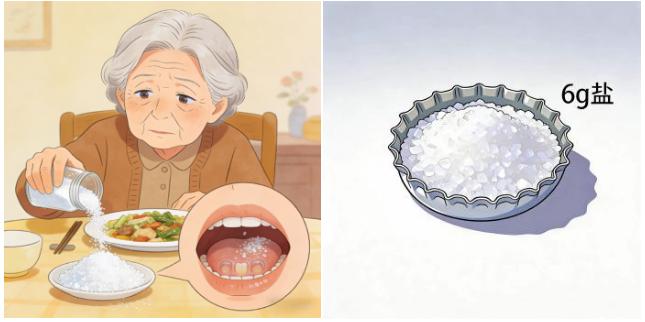 1. 味觉退化易超标:中老年人味觉变淡,做菜放盐量会不自觉增加,很容易突破每日6g的推荐量,长期高盐饮食会直接升高血压。