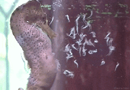 在发育完全后,雄海马会激烈肌肉收缩把幼崽排出体外,就像人类女性生孩子一样。