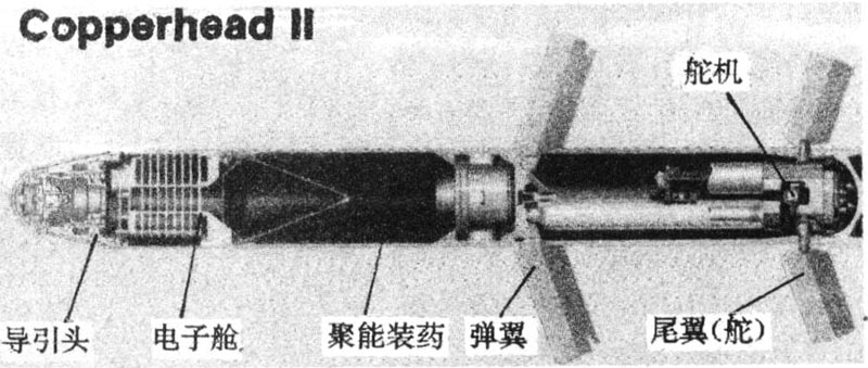 两年后,五角大楼正式宣布,美国正在研究用155毫米榴弹炮发射一种激光半主动制导炮弹。正象美国人喜欢用“响尾蛇”、“眼镜蛇”等毒蛇名称来命名新式武器一样,这种新式炮弹被称作“铜斑蛇”(Copperhead)。