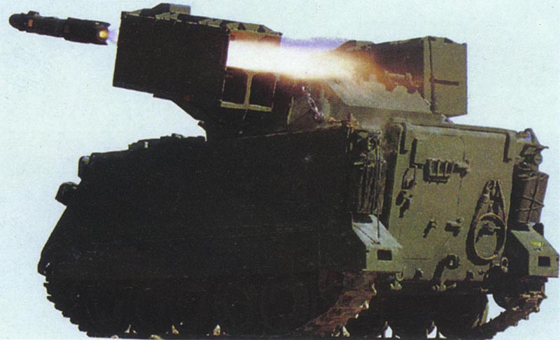 ▲ “海尔法”反坦克导弹从M113装甲车上发射