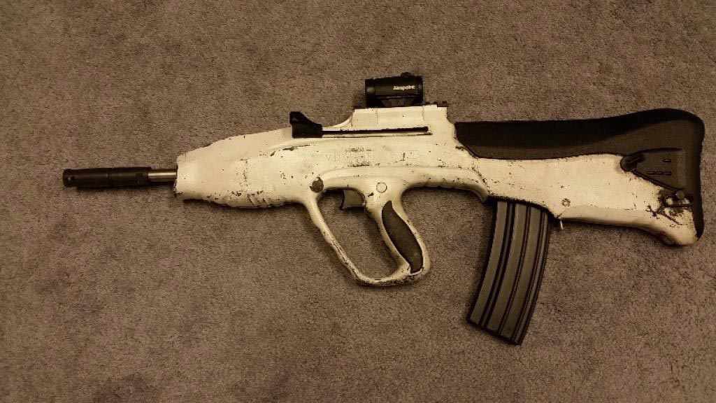 该枪配有放大1.5倍的光学瞄准镜,还可选择一种3倍的光学瞄准镜,在光学瞄准镜的上方还装有备用机械瞄具。