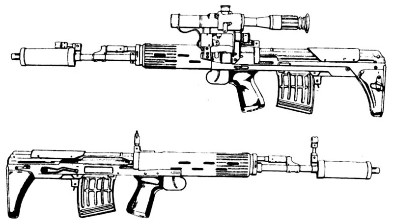 ▲ 俄罗斯7.62毫米SVU狙击步枪的示意图,上为Ots-03AS型