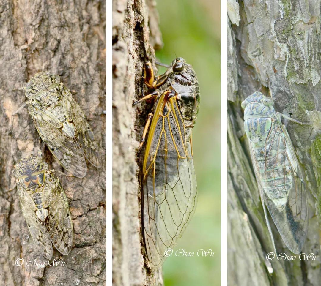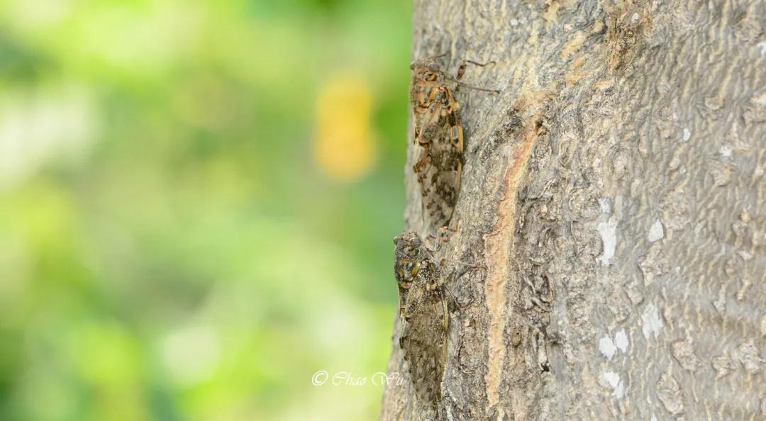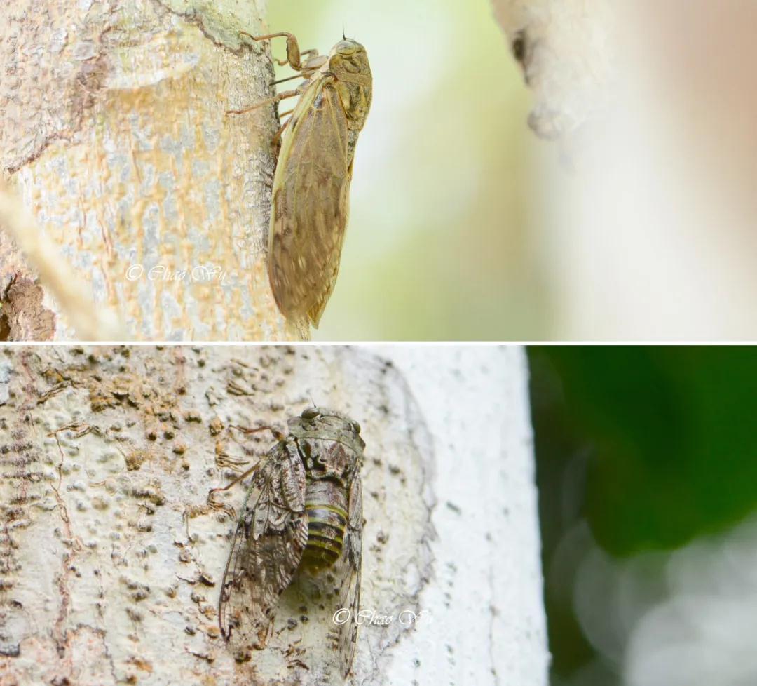 “朝菌不知晦朔,蟪蛄不知春秋。”两千多年前,庄子就通过《逍遥游》奠定了蟪蛄延续至今的知名度。 但你知道,蟪蛄其实是一种蝉吗? 鸣叫中的蟪蛄。鸣叫时,它们会稍稍分开双翅,抬起腹部,使声音更好地传出。摄于北京香山。图片:吴小咖是个好孩子 夏虫不可语冰 “本以高难饱,徒劳恨费声。”自古以来,中国的文人们便把蝉视为高洁不染的象征,把它作为寄托情思的载体,歌颂居多,相怜为主。可是,蟪蛄却似乎被排除在这“高洁”的蝉族之外。 “城市不识江湖幽,如与蟪蛄语春秋。”每每提及蟪蛄,它似乎总是“夏虫不可语冰”的代言。这不公的待遇大概要归罪于蟪蛄与众蝉不同的样貌:多数蝉有着透明的薄纱般的翅膀,而蟪蛄的翅膀则有显著的色彩——并非华丽的亮色,而是树皮一般的晦暗的保护色。 乍一看,这样暗淡的色彩让人觉得蟪蛄就像一只小蛾子,而非“高居悲鸣饮露”的蝉。郑樵在《通志》中记载:“庄子云蟪蛄不知春秋,则是今四、五月小紫青色者。”可见蟪蛄一词的专指性,自古以来便比较明确,少有争议。 算不上最佳歌手 蟪蛄所在的半翅目-蝉科-蟪蛄族在非洲较为兴盛,分布在东亚的物种并不算多。在中国,蟪蛄族包含了蟪蛄属 Platypleura、蛉蛄属 Pycna、毛蟪蛄属 Suisha、非洲蟪蛄属 Afzeliada 等四个属,十余个物种,我们日常所说的蟪蛄就是蟪蛄属的一员,它也是少有的能分布到北方地区的蟪蛄族昆虫。 蟪蛄相对易于辨识,但在华中和华南地区,也可能会和黄蟪蛄 Platypleura hilpa、蛉蛄 Pycna repanda 等混淆。 与蟪蛄近似的黄蟪蛄(上)和蛉蛄(下),它们在南方各地也比较常见。图片:吴小咖是个好孩子 在中国,蟪蛄分布广泛:北起辽宁,南至海南,西自四川盆地,东迄舟山群岛;可以说中国大部分地区都可能见到这些树皮色的小蝉。同时,蟪蛄也是为数不多的非常适应城市环境的蝉类——即使在北京上海这样喧闹的大都市中也不难见到它们。 在华北地区,蟪蛄从五月中旬开始鸣叫,它们实际羽化的时间还要早一些;越往南方,这个时间点就相应越早,当然,也会结束得更早。蟪蛄的鸣声比较单调,是相对单一的“吱”声,没有婉转的曲调;声调比蚱蝉尖高,但音量要小很多,不算吵人,但可能让人有一种耳鸣的错觉。 不太起眼的土肥圆 尽管颜色不太符合我们对蝉的固有印象,但蟪蛄还是有着蝉科的标准外形:宽阔的头部,厚实充满肌肉的胸节,两对能挂连在一起的翅膀,六条短足,以及短而紧凑的腹部。它们有一根针管样的刺吸式口器,会将口器刺入植物枝条,吸食植物汁液为生。 蟪蛄的前翅显著长于后翅;前翅上布满了阴影般的花纹,后翅则是统一的紫黑色,但有一个透明的边缘。雄性蟪蛄的腹面有一对半圆形的腹瓣,腹瓣内侧有一套鼓膜发音器,雄蝉就是靠这里发出声响;雌性则没有这样的结构。 蟪蛄是半变态昆虫,小时候(若虫期)生活在地表之下,靠吸食树根的汁液为食。为了适应地下的挖掘生活,蟪蛄若虫的前足非常有力(呈开掘足的形态),锋利的齿突可以助它们在土壤中挖掘前行。 蟪蛄的若虫很像是缩小版的蚱蝉若虫,但体型更加浑圆紧凑——可能正是因为体型较小,似乎很少有人收集蟪蛄的若虫回去炸食。这些若虫经过大约两年的时间,在数次蜕皮后达到成熟若虫阶段,爬出地表,在树枝上“金蝉脱壳”,羽化为成虫。 蟪蛄的蜕,看起来很像缩小版的蚱蝉,但明显圆润。若虫发达的前足,可以用来挖掘土壤。摄于北京香山。图片:吴小咖是个好孩子 夏虫永不停唱 羽化后的蟪蛄很快就能飞行,但还需要经历一段时间的成熟期,才会开始鸣叫求偶。蟪蛄通常单独停在树干上鸣叫,在保护色和斑驳的树影下,它们很难被发现,常常只闻其声不见其蝉。不过在夜晚的路灯下,蟪蛄有时会被灯光吸引过来,这时就很容易发现它们了。 进入成熟期的雄性蟪蛄有时也会数只群聚在一起,共同高歌,靠合奏声吸引远方的雌性。不过,当雌性蟪蛄到来后,这些合作的歌手们就变成了相互竞争的对手,互相排挤,以独揽芳心。 一对求偶中的蟪蛄。摄于北京香山。图片:吴小咖是个好孩子 尽管交配会大大损耗雄性蟪蛄的体力,但也不至于一次欢愉即死——运气好的话,雄性蟪蛄会尽可能多地交配,直到衰老死亡。 雌性蟪蛄在交配后会选择合适的枝条产卵,其腹部末端有一根结实的针状产卵器,可以将卵产进坚韧的树枝。孵化后的小若虫会从枝头掉落到地面,钻入土壤,开启它们漫长无光的童年生活。 在很多城市,蟪蛄是一年中最早开始鸣叫的蝉。相比若虫期,它们的成虫寿命并不算太长;最迟到七月中旬,在东部地区的城市中,蟪蛄便基本销声匿迹。取而代之的是聒噪恼人的黑蚱蝉和悠扬悦耳的蒙古寒蝉的合奏,它们在接手唱台的同时,也宣告着熬人的三伏天终于到来。 到了六月下旬,蟪蛄们就开始逐渐死掉。掉落下来的尸体不会被浪费,是各色小动物的口粮。摄于北京香山。图片:吴小咖是个好孩子 蟪蛄、黑蚱蝉和蒙古寒蝉,在东部地区的城市中非常常见。摄于北京各地。图片:吴小咖是个好孩子 而蟪蛄,这些看似生于春暖花开、死在盛夏将临的小蝉的另一代,此刻正在地面下韬光养晦,感受着你行走时带来的震动,等到来年五月花满,再与你相见于初夏。 本文是物种日历第6年第170篇文章,来自物种日历作者@吴小咖是个好孩子。