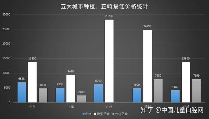 此图是全国北上广深和成都五大城市在阿里健康上的种植和正畸的最低价格,从下图中可以看出,上海是目前国内口腔医疗竞争最为激烈的区域,隐形正畸、传统矫正都报出了全国的最低价。