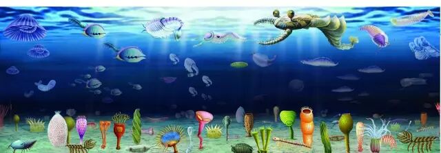 之后出现的埃迪卡拉动物群是晚前寒武纪最后一次后生动物大辐射,它主要由一类软躯干大型疑难生物类群所组成,如单体水母、水螅、叶状海笔、扁平状多毛类和三射对称水母状棘皮动物等。