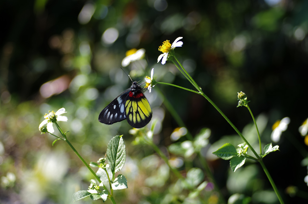 居住在西南和华南地区的朋友,对一种黑黄相间、身上有一抹惹眼鲜红色斑块的蝴蝶应该不会太陌生。这便是报喜斑粉蝶 Delias pasithoe。