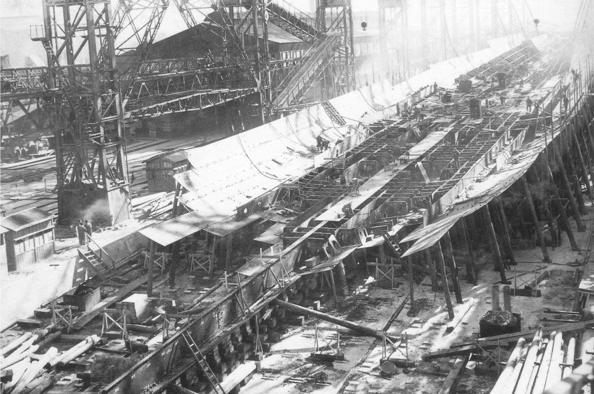 ▲ 日本1938年建造“翔鹤”号航母的场景。