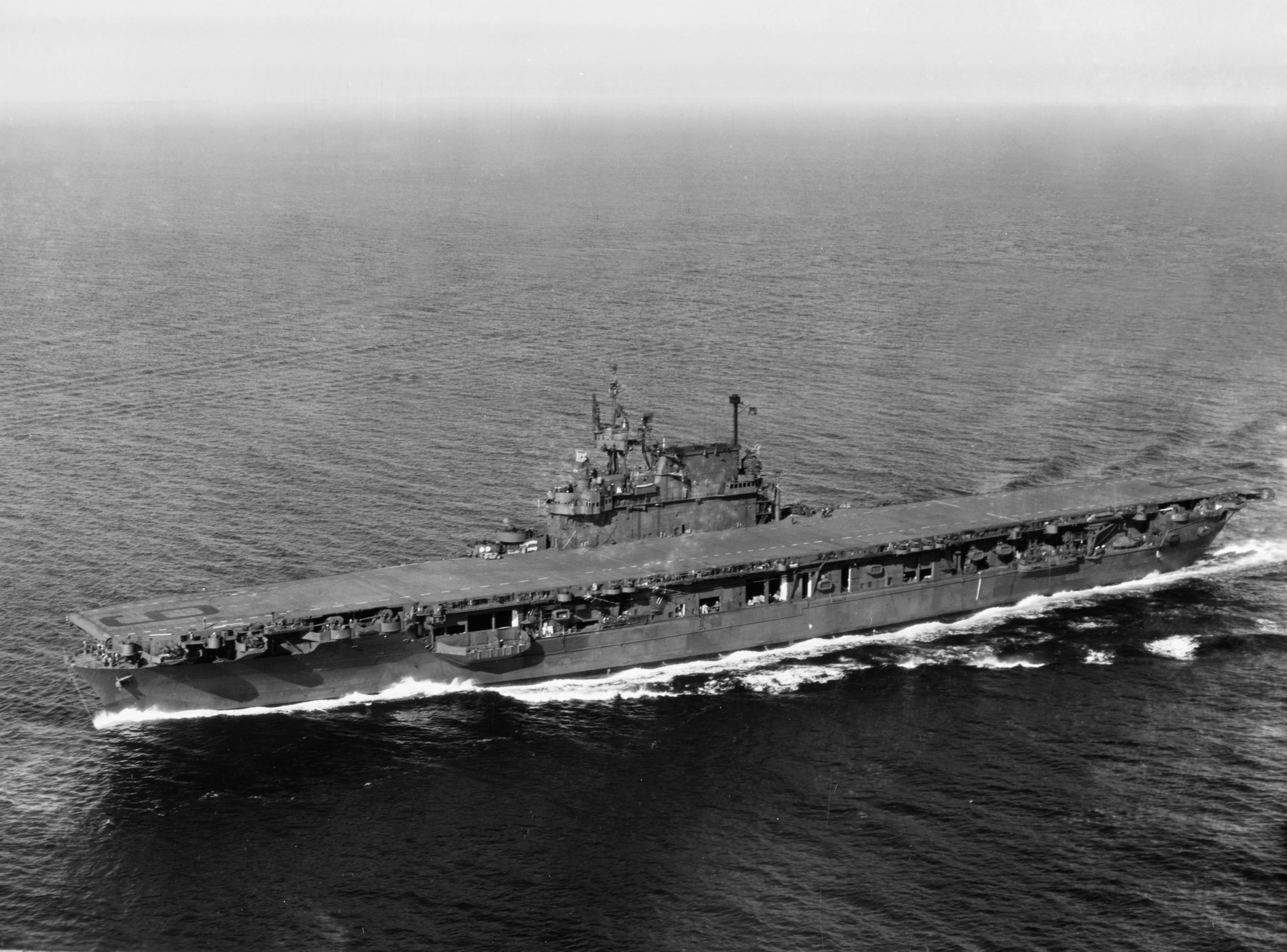 ▲ 1945年9月,在普吉湾上航行的美海军“企业”号航空母舰(USS CV-6)。