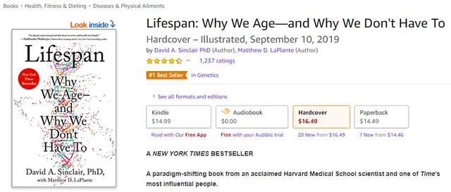 大约是NR的研究结果太多了不利于宣传,保健品生产商开始青睐没怎么被研究过的NMN。自从另一款抗衰老“神药”白藜芦醇(详见《“神药”白藜芦醇是怎么炒红的?》)的发现者和推广者David Sinclair去年发行了他的新书Lifespan后,NMN引起了许多关注。在这本书中,这位哈佛教授介绍了他对NMN的研究,主要是在小鼠中。他也宣称自己服用NMN。