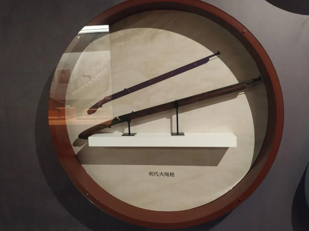 展厅中的“鸟铳”由铳管、瞄准装置、枪机、弯形铳托等部分构成,“鸟铳”铳管长度与口径之比大约在50:1-70:1之间,铳管长可以使火药在铳膛内充分燃烧,使弹丸获得更大的初速度,射中更远的目标。展厅“鸟铳”的枪机是一个金属弯钩,一端固定在枪身上,另一端是一个夹钳火绳的机头。此外,“鸟铳”还有瞄准装置,这是古代手铳所不具备的装置。其瞄准装置一般有准星和照门,提高了“鸟铳”的命中率和杀伤力。