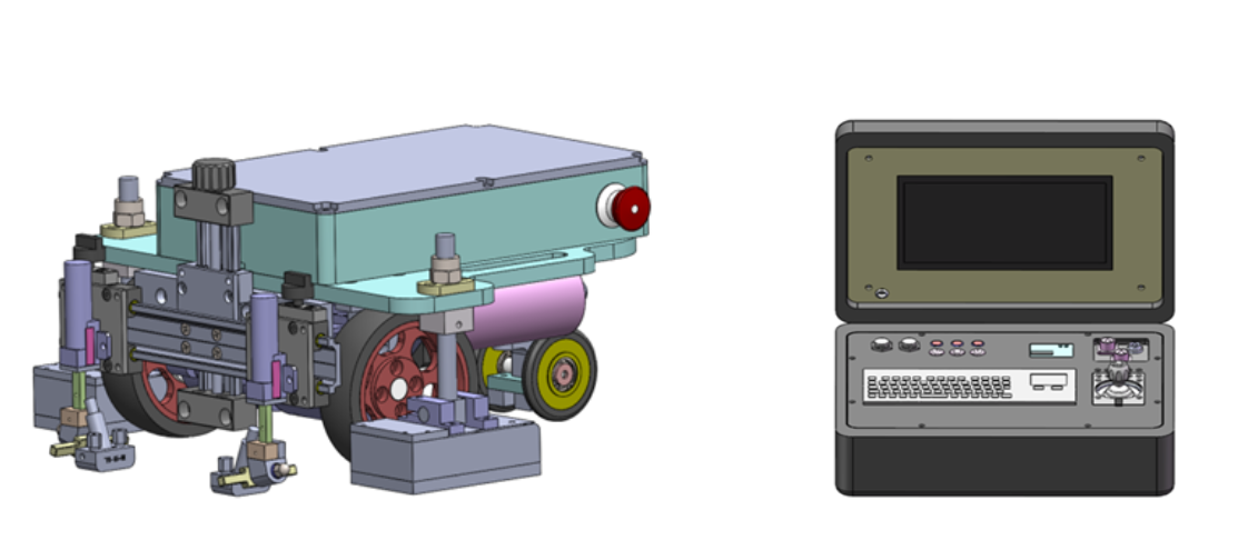 永磁吸附式超声检测机器人主要由机器人本体、移动平台、探伤检测系统、软件控制系统、操作控制台等部分组成。