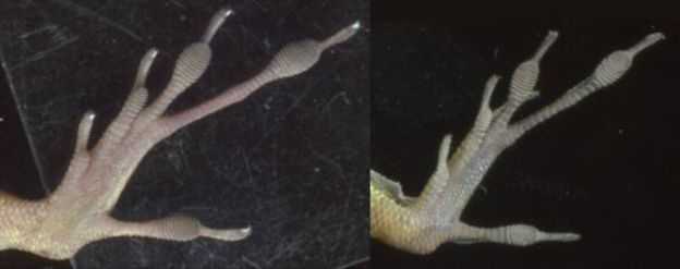 城市蜥蜴(左)和乡下蜥蜴(右)的脚趾