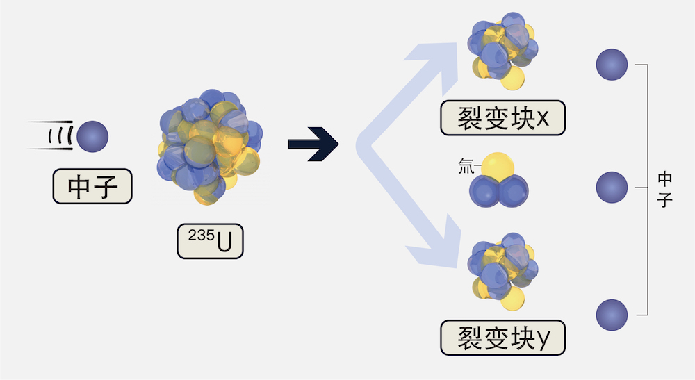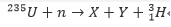 核电厂中,核裂变时会生成氚,此外,反应堆内轻水、重水、硼或锂等材料也能俘获中子生成氚。例如常见的压水堆中,核燃料发生三元裂变: