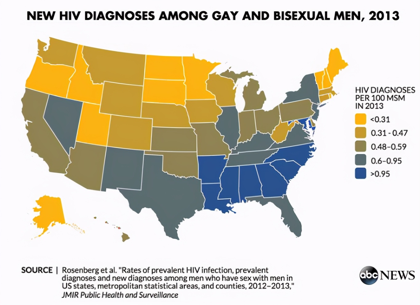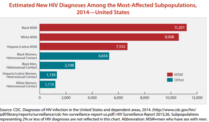 2014年,美国HIV感染者的主要群体是男同性和男双性恋,在13岁以上的人群中,达到了83%,而13-24的年龄段新诊断的HIV中,gay和bisexual 达到了92%。