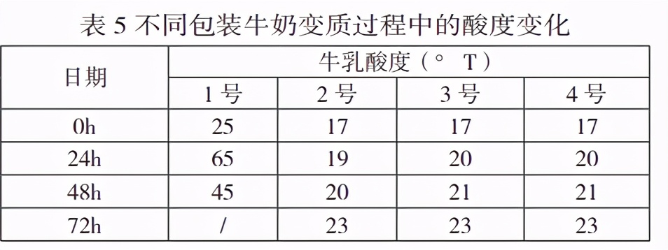 后来发现,我遇到的问题,其实早有人研究过了,比如下面这个内容是来自一篇论文[1],研究的是不同包装和灭菌方式的牛奶保质期和酸度变化比较。