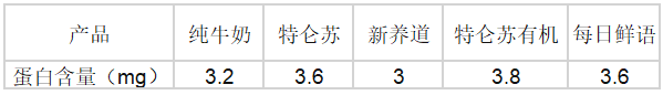 结果就是,同一品牌的不同产品线由于选择了不同的奶牛、不同的饲料以及不同的饲喂环境,蛋白含量差异较大。