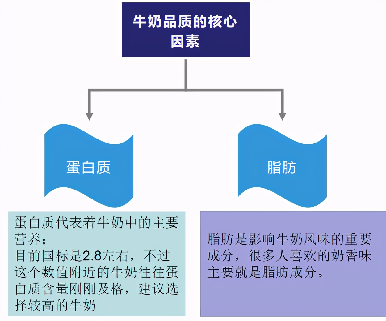 当然,牛奶那么多成分,估计很多人一看就懒得去关注了,其实没关系,最需要关注的就是两个内容:蛋白质和脂肪。这俩基本是决定牛奶品质的核心因素。