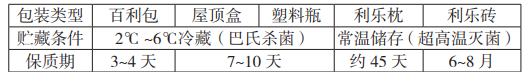 1.常见的牛奶保质期如下(根据包装、储存条件进行分类)