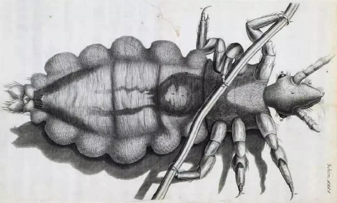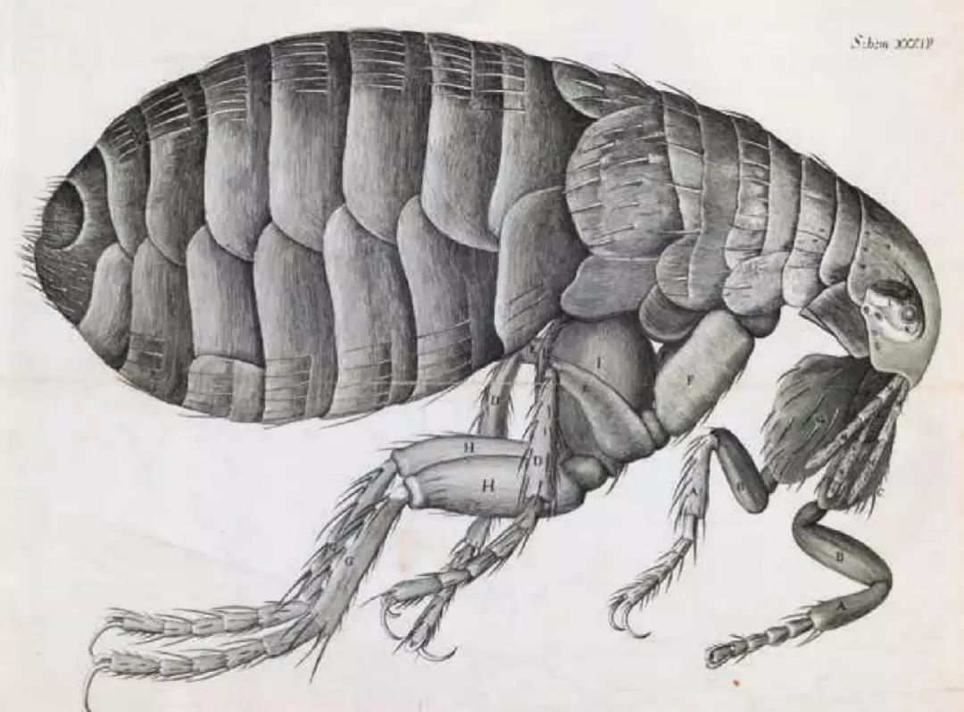 胡克书中跳蚤的插图,也是人类历史上第一张跳蚤的写真
