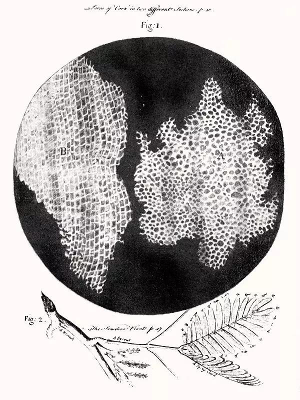 《显微图谱》书中第一次使用了 “细胞”(Cell)这个词。胡克有一次从一块软木上刮下薄薄的截片,放在显微镜下观察。他看到许多小的“密闭房间”,很像蜜蜂窝,于是他就将其称为Cell,后来日本人和中国人将这个词翻译为“细胞”。胡克的观点基本准确,但这些小房间其实不是真的生物细胞,而是细胞死后留下的细胞壁。