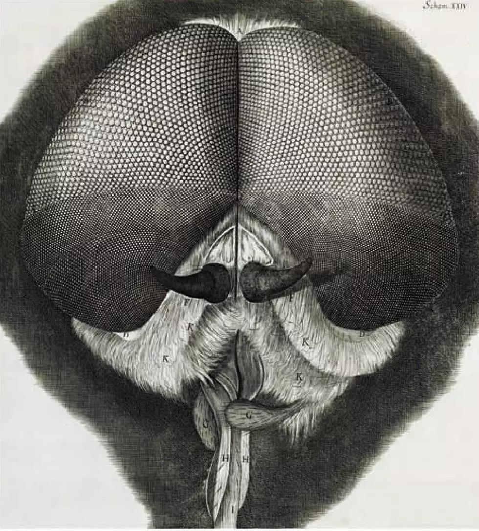 《显微图谱》中的诸多专题和大家熟悉的昆虫有关,例如苍蝇、蜜蜂、跳蚤、蚂蚁和虱子。
