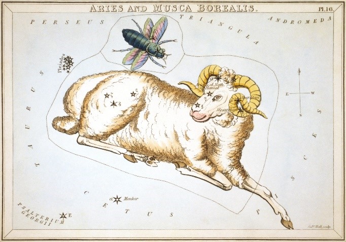 (白羊座后背上北蝇座,它已经从蜜蜂转成了苍蝇的形象。)