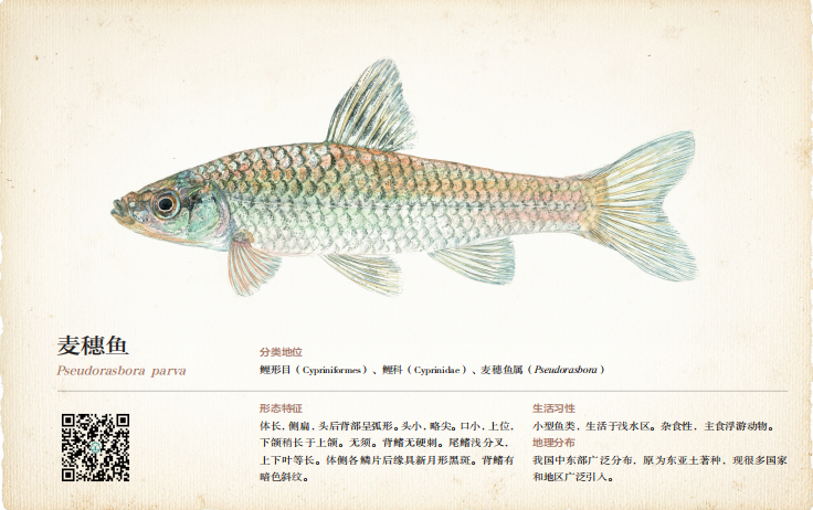 生活习性:小型鱼类,栖息于静水环境浅水区。杂食性,主要摄食水生昆虫等。
