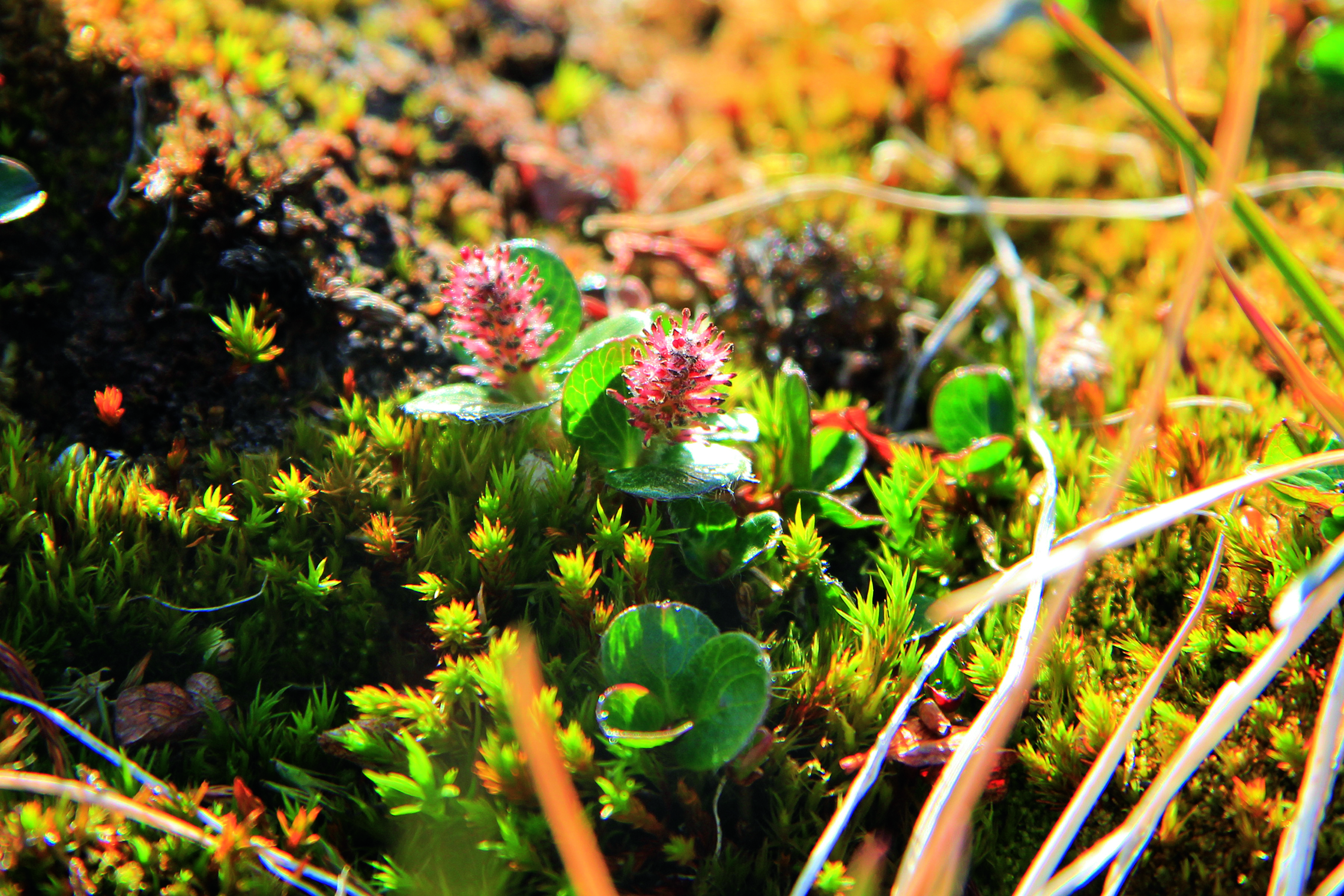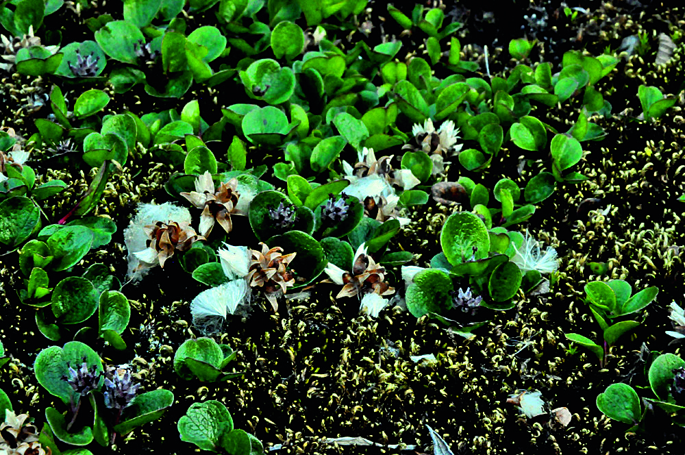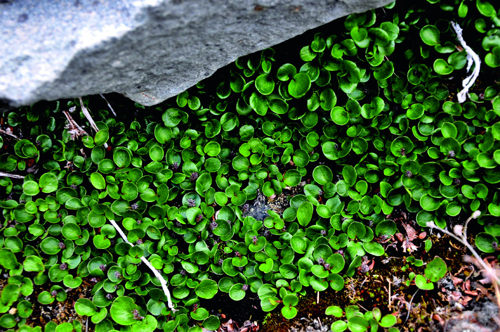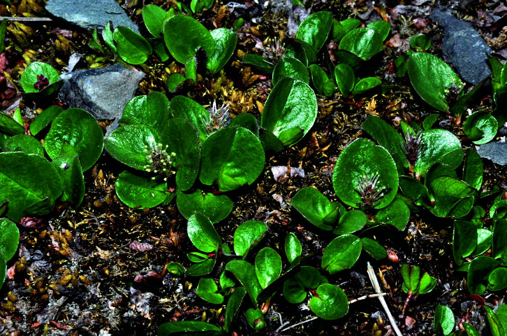 在北半球的北部,即跨过串联起北欧、北亚、北美的那片寒温带针叶林,再往北走,植物在狂风、低温和冻土三大要素的“抚育”下,越接近极点,植株就变得越矮小。而柳树呢,简直把这个“定律”发挥到了极致。从乔木型,变成灌木型,最后就剩下两三片豌豆瓣儿大小的嫩叶了,这又该管它叫什么型呢?是柳芽儿,还是“微缩艺术品”?不,人家仍然以树的名义自居。
