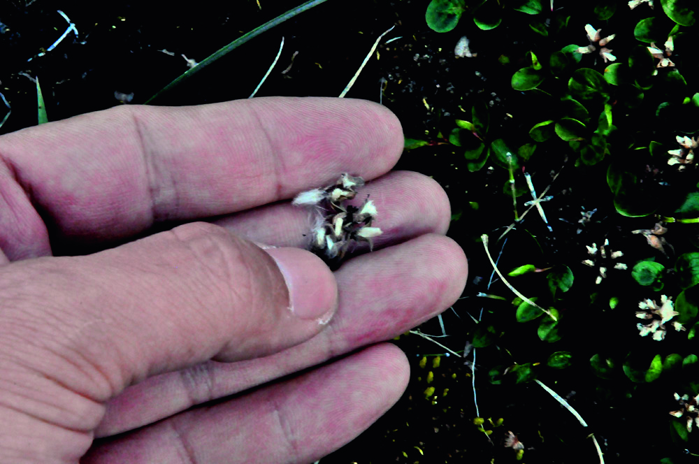 角果炸裂开,露出洁白的柳絮