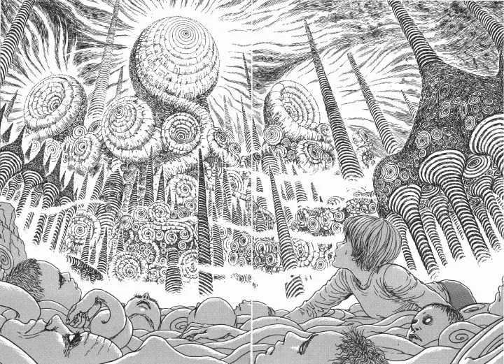 最后提一下漫画。八月的漫画除了Dark House出品的B.P.R.D.系列(地狱男爵的番外系列)有三本引进外(新星出版社出版),最重磅的漫画莫过于伊藤润二的《旋涡》了。该作讲述了一个依山傍水的小镇被怪异的旋涡状图样侵蚀,最终完全遭到扭曲的故事,其中的恐怖美学颇有爱手艺的味道。伊藤润二所描绘的世界始终弥漫着无处可逃的怪诞,人心的痴妄会在这样的世界里同异象合而为一,渐渐失去彼此间的边界。这种心相的外化经由图像呈现出来,表现力和感染力都是非常优秀的。