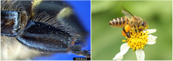 蜜蜂的携粉足 “提”着花粉团的中华蜜蜂工蜂