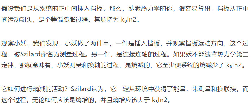 但是,Szilard说,热力学第二定律是不可违背的,人不能,妖也不能。