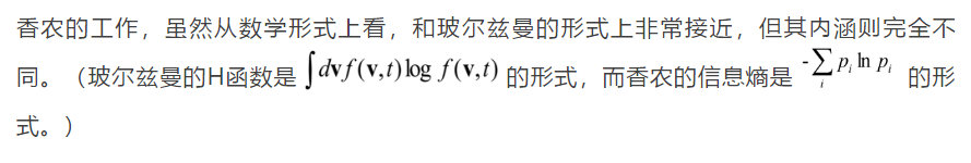1948年,香农建立了信息论,并且在冯·诺伊曼的建议下,借用玻尔兹曼的定义方式,将平均信息量定义为信息熵,并且选用了H定理中如我们前文提到的H,作为信息熵的记号。[6-7]
