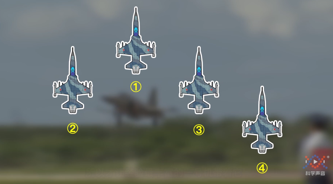 两架战斗机这次怎么会撞上了呢?其实是4架战斗机在做编队飞行。飞机编队通常摆出一个“人”字的阵势。打头的是1号机,资历最老,经验最丰富。左后方是2号机,是编队里最菜的一个。右后方的3号机也是老手,负责带着4号机。4号机相对偏弱,不过总比2号机强。正因为2号机最弱,所以才让经验最丰富的1号机带着他。