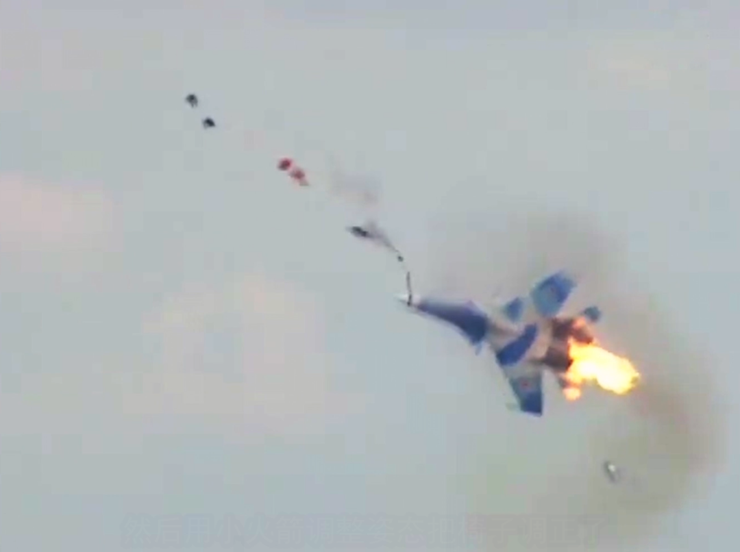 这种极端的情况下,也不是没有办法。如果装备的是俄国人的K36弹射座椅的话,还有的救。当年苏37飞行表演的视频,俄国飞行员特技动作太泼辣,导致飞机擦了屁股。这时候,飞机距离地面很近,而且角度也不好,K36弹射座椅启动以后,先是弹射出舱,然用小火箭调整姿势,把椅子调正,然后开足马力往安全的地方飞,这才救了飞行员一命。
